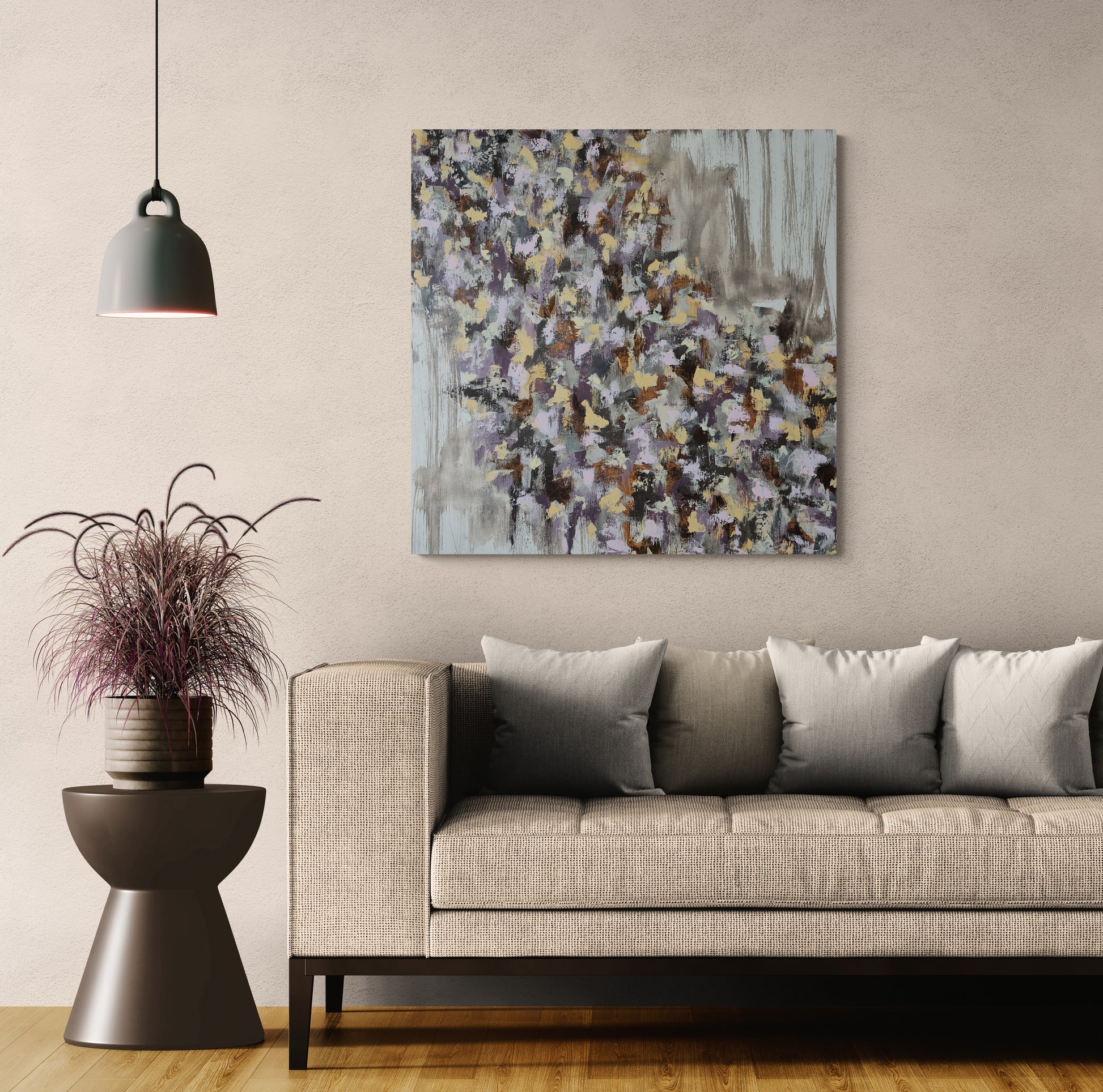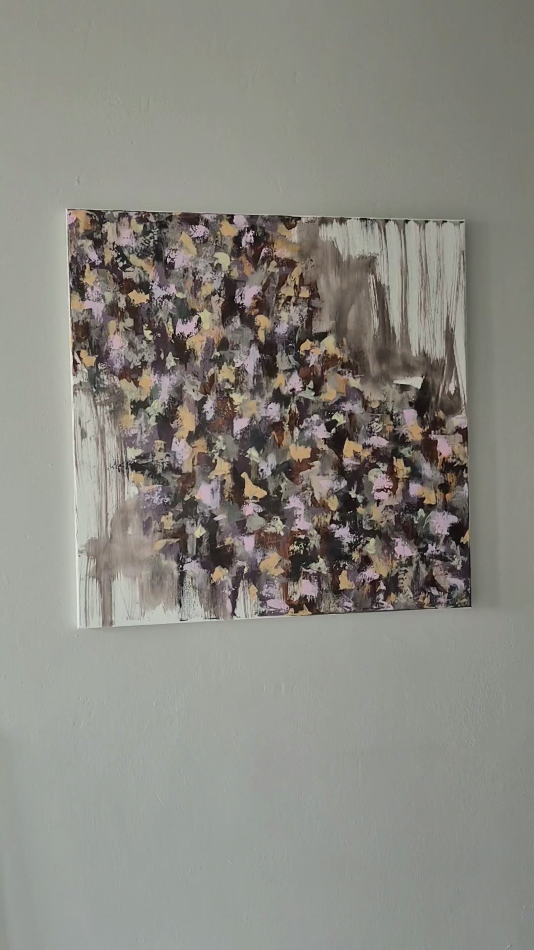 Abstrakt maleri malet med akryl på lærred. Maleriet er sprayet med et tyndt lag mat lak, for at beskytte mod sollys og støv. Maleriet sælges uden ramme. Maleriet er signeret med mit navn og årstal, på bagsiden.
