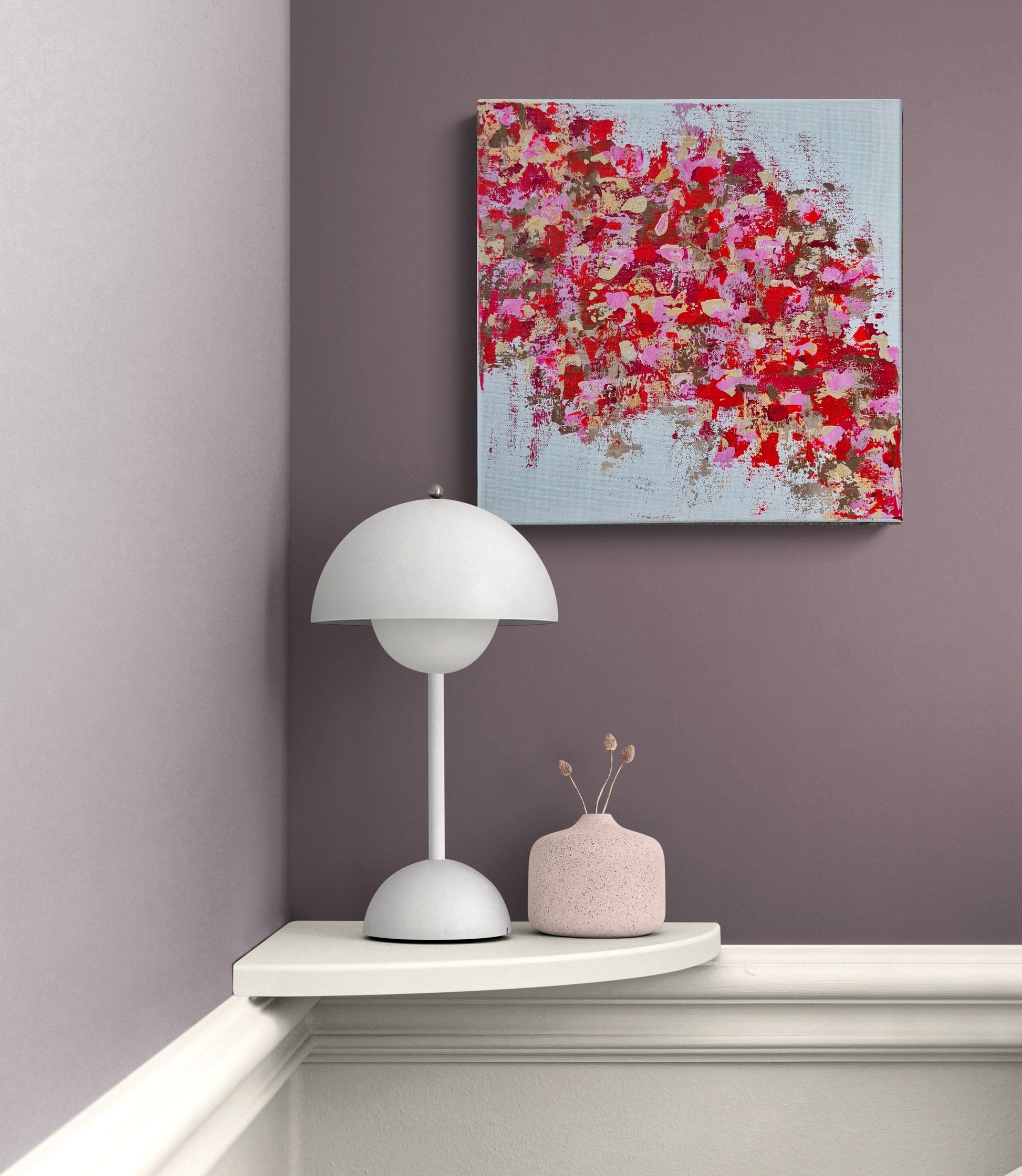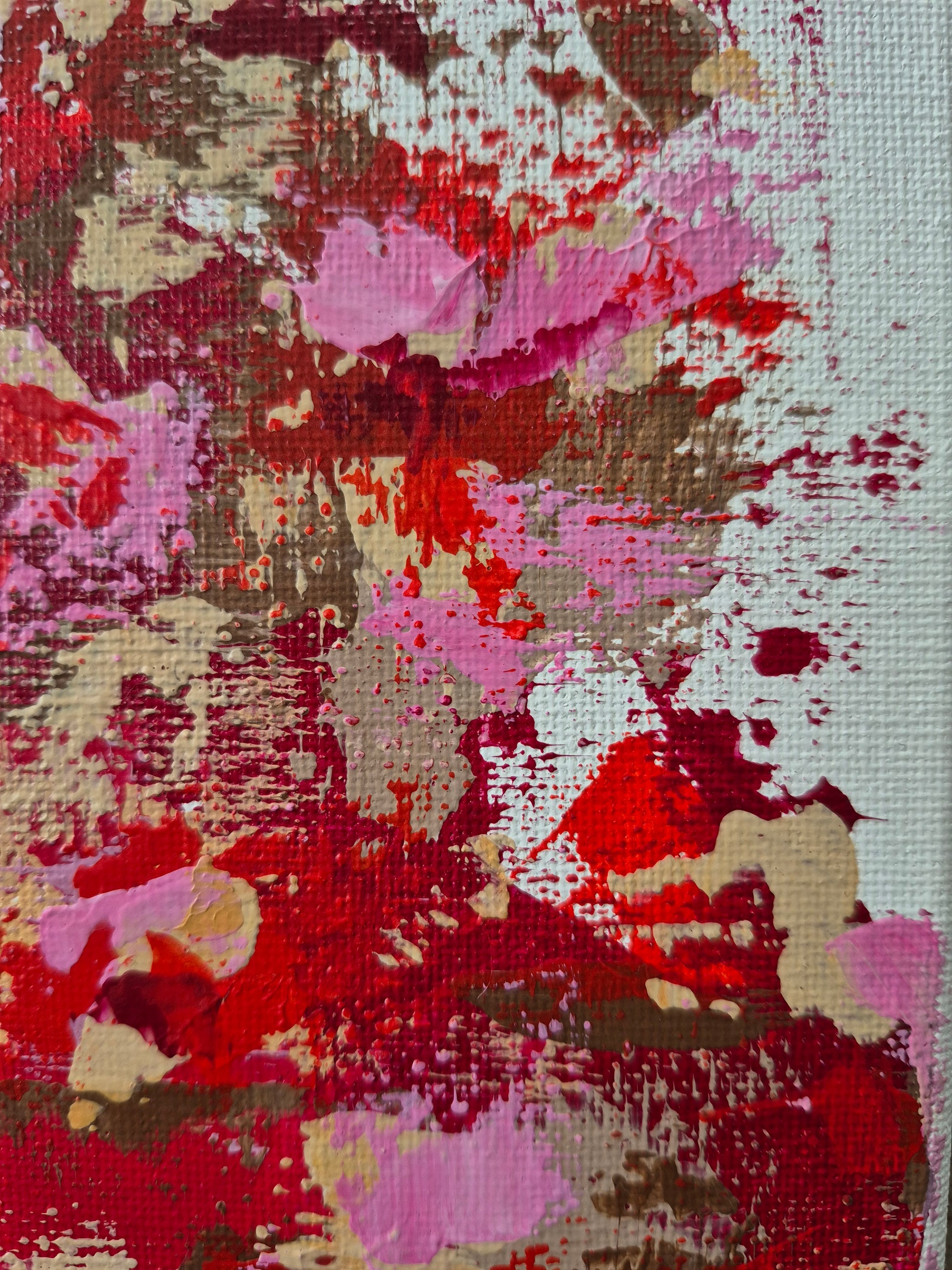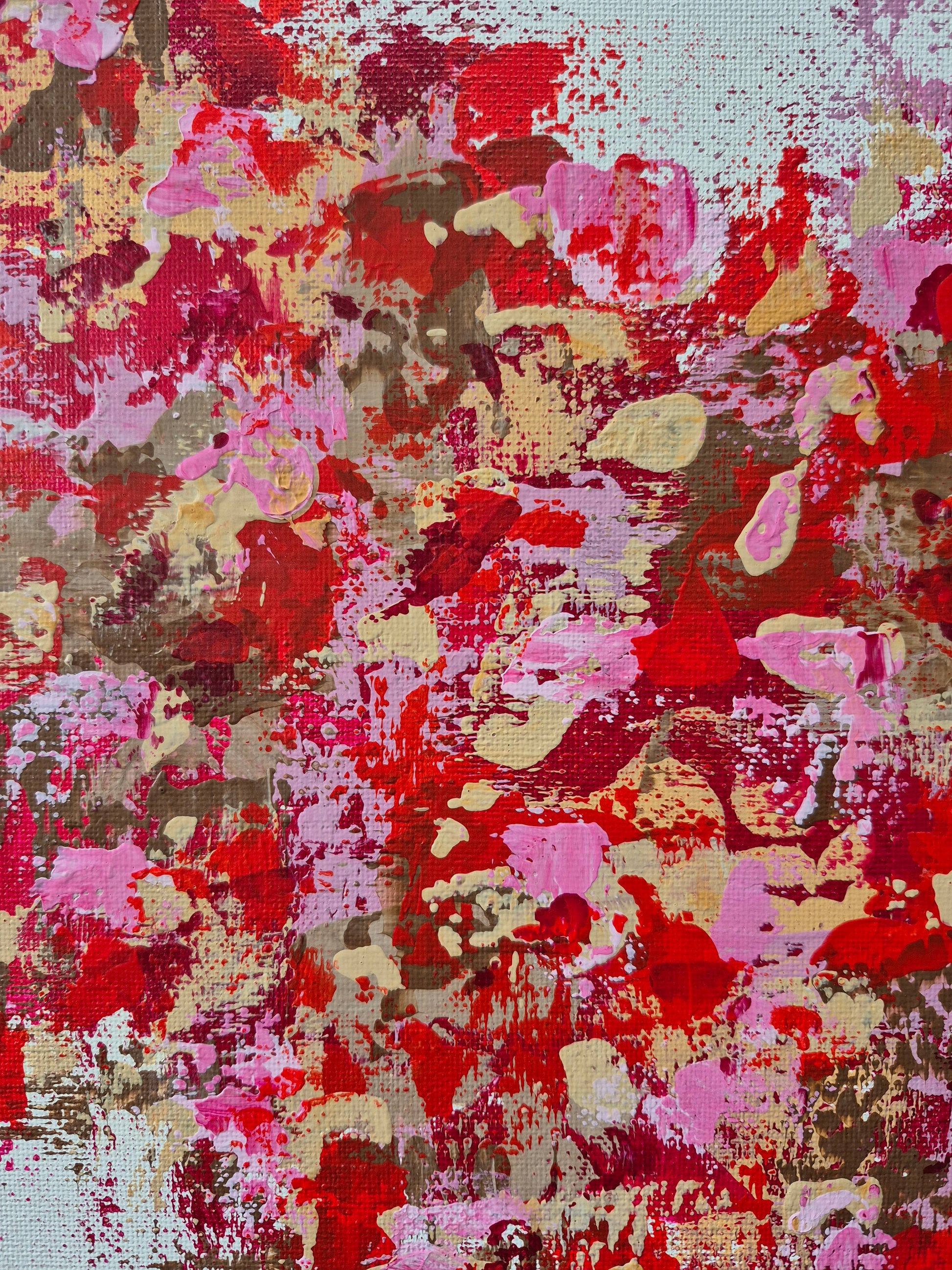 Abstrakt maleri malet med akryl på lærred. Maleriet er sprayet med et tyndt lag mat lak, for at beskytte mod sollys og støv. Maleriet sælges uden ramme. Maleriet er signeret med mit navn og årstal, på bagsiden.