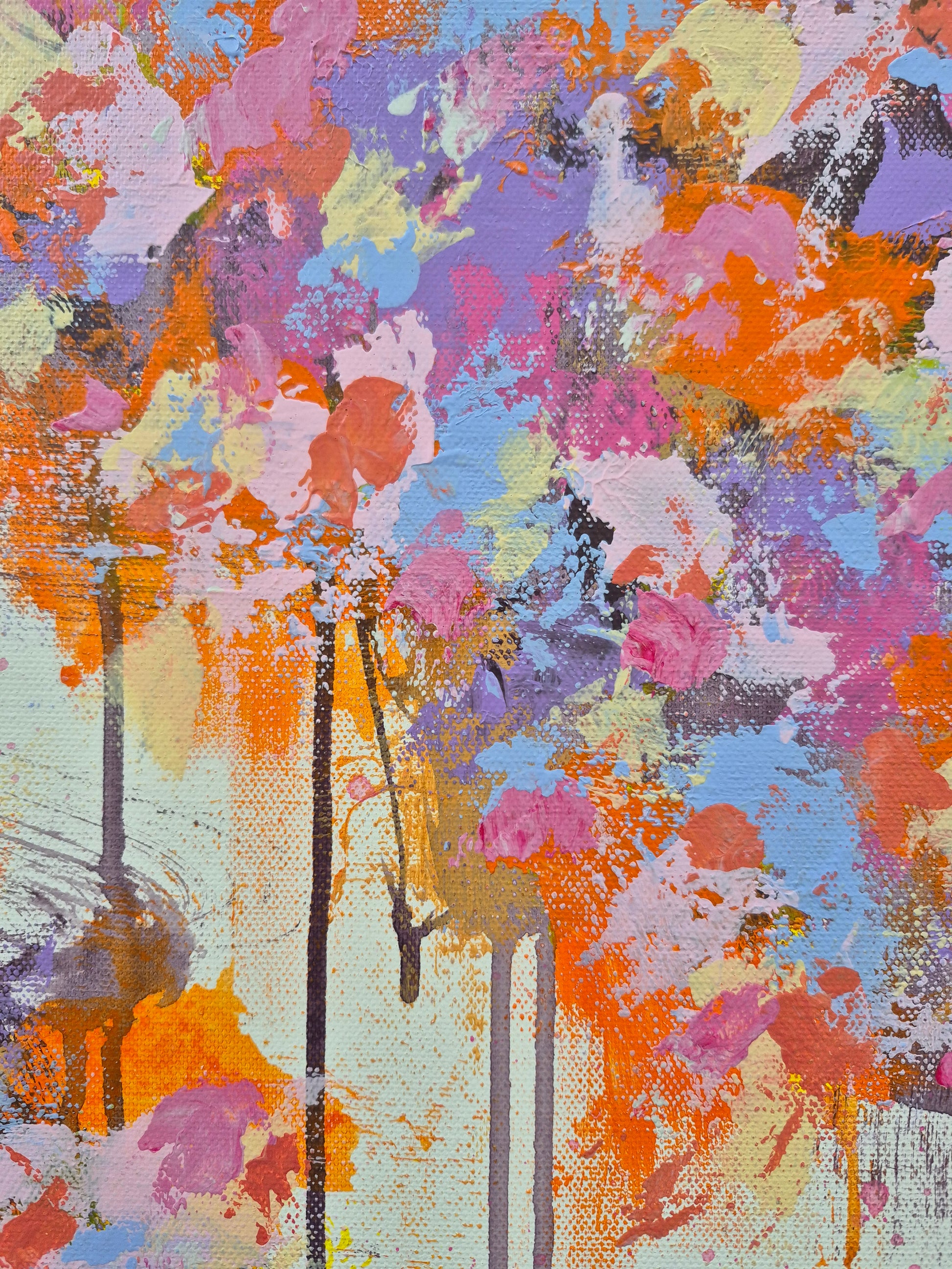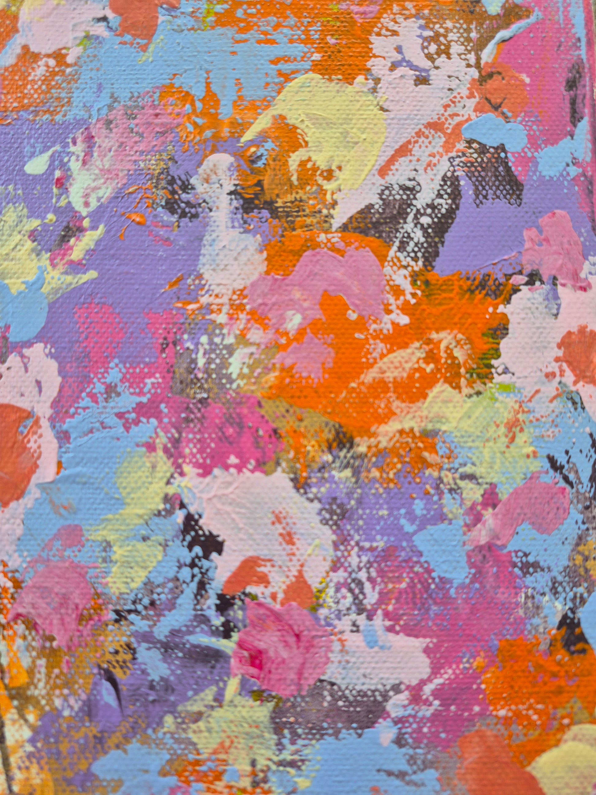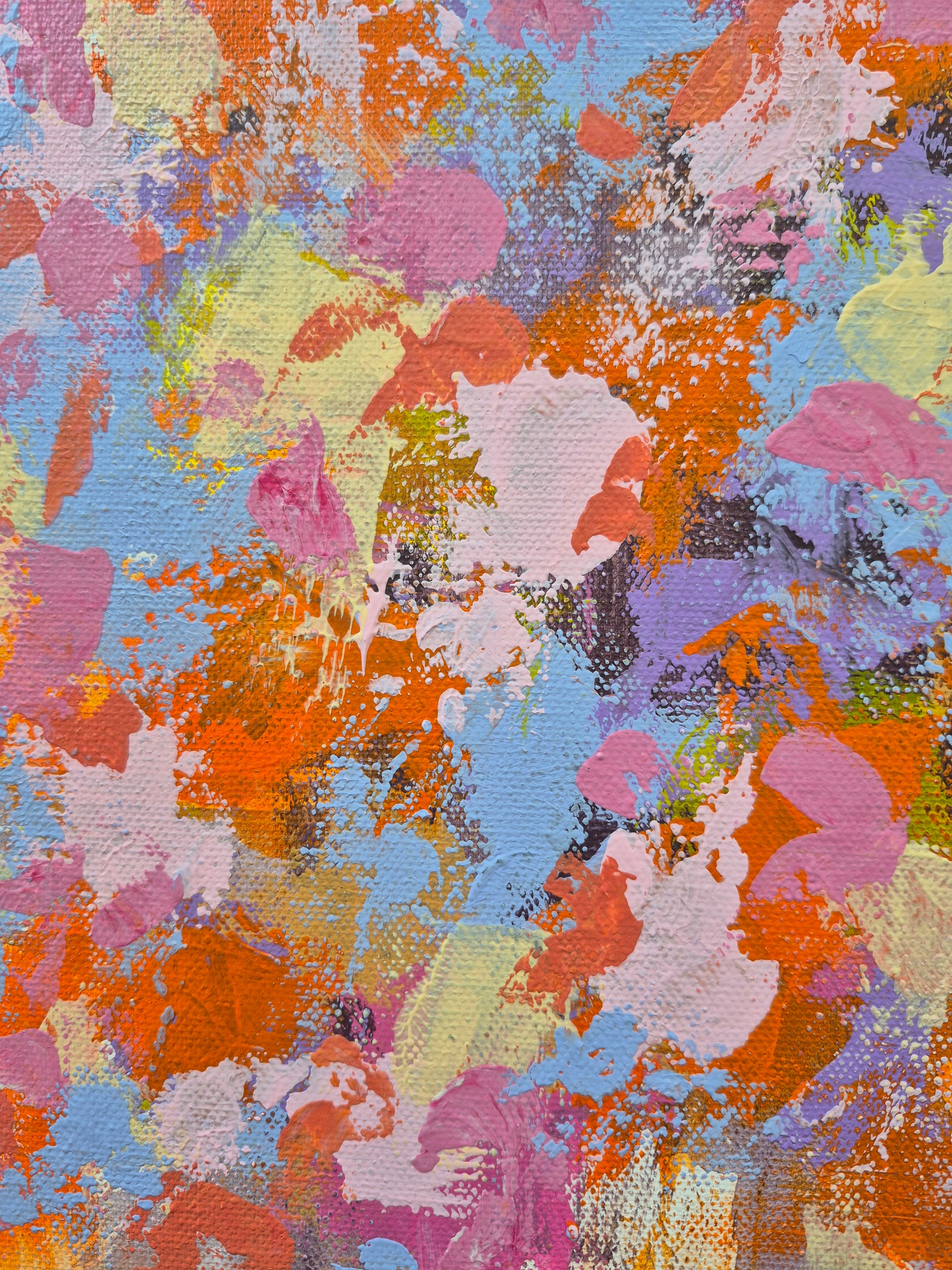 Abstrakt maleri malet med akryl på lærred. Maleriet er sprayet med et tyndt lag mat lak, for at beskytte mod sollys og støv. Maleriet sælges uden ramme. Maleriet er signeret med mit navn og årstal, på bagsiden.